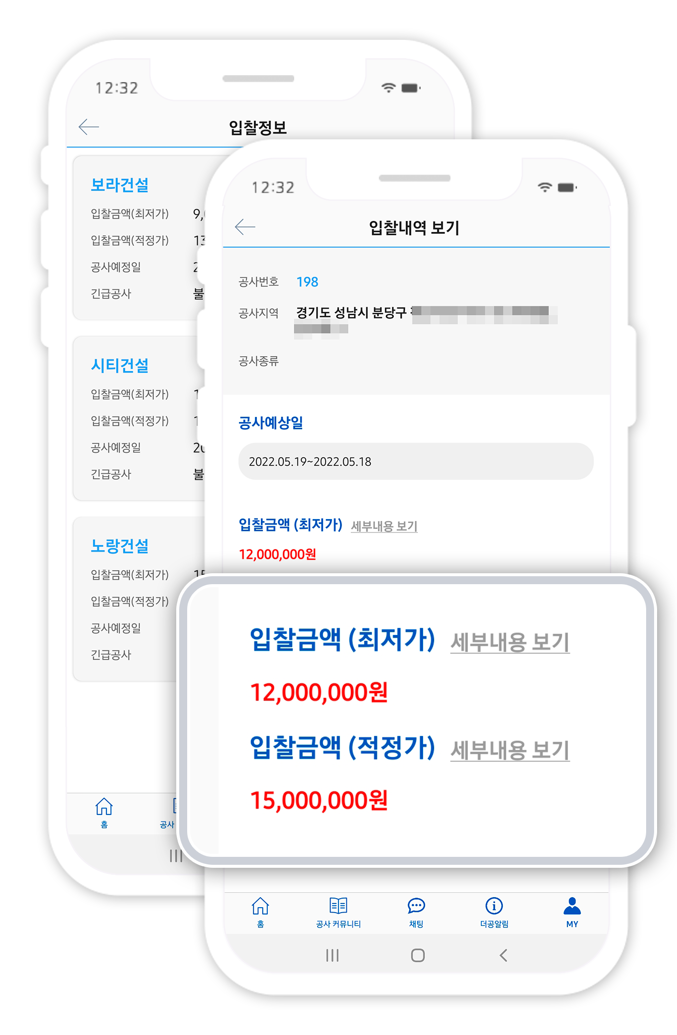 최적 공사 정보 제공(금액, 업체, 기간, 주요자재 등)